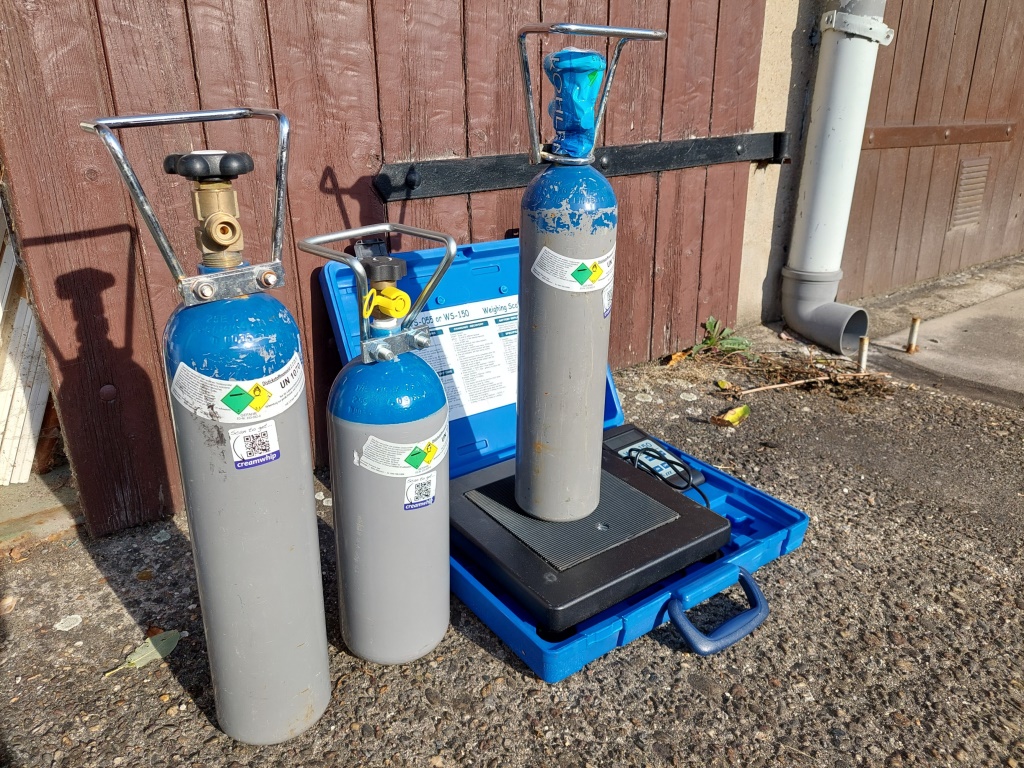 Es handelt sich dabei um zwei volle und eine halbvolle 2Kg N2O Flaschen, also haben wir von der Seite schon mal