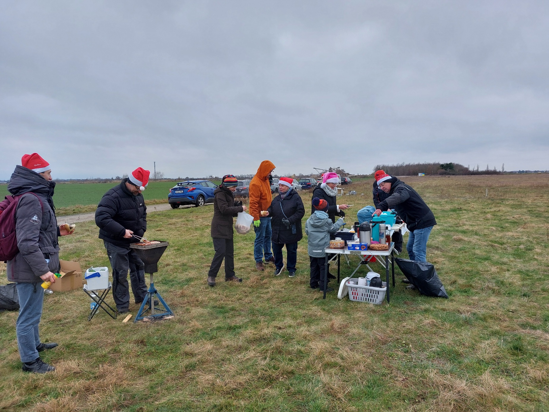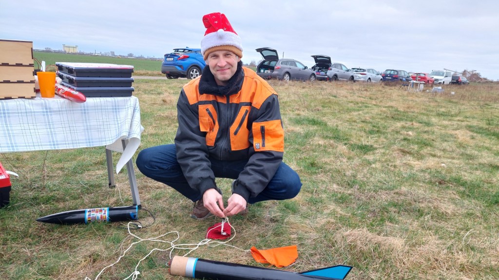Von mir auch noch ein paar Bilder, wie immer hab ich natürlich zu wenige gemacht. Danke nochmal für die Organisation und die sehr gute Versorgung mit dem Catering. Am "Buffet" und Grill kommen alle zusammen. Raketen mit Weihnachtsmützen fliegen gut, aber die Mütze kostetete mehr Höhe als erwartet wodurch die Verzögerung der Ausstoßladung zu lang war, aber gerade noch rechtzeitig vor der Landung den Fallschirm auswarf. Andreas bereitet seinen Schlitten vor, der Flug war das Highlight des Tages - gut gestartet und links abgebogen fast parallel den Schotterweg entlang. Gruß Benni