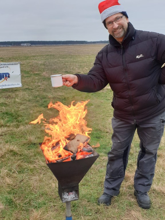 Die Schokoladenweihnachtsmannrakete wurde erfolgreich geborgen und wie versprochen gabs als Belohnung den Schokoweihnachtsmann zum sofortigen vernaschen...  ! Clustern ist Clusse... die weiße Europa... die schwarze Europa... Glühwein auf offenem Feuer... Grüner Rauch auf Roter Jahne, das hat was... Start der Europa.