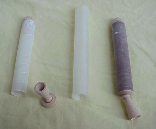 da der erste Booster schon 55g wog, habe ich mich kurz entschlossen, keine laminierten Papprollen (Gemüsestand Supermarkt) mehr zu verwenden, sondern nur 2 Lagen GFK. Die Spitze und die Düse sind gedrechselt und so weit es möglich war ausgebohrt. Folgende Datei wurde angehängt: |