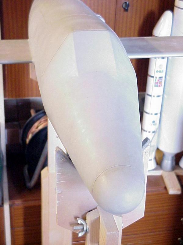 Hi all, ich hatte ja versprochen, wenn das Teil im Rohbau fertig ist, etwas über mein Experiment zu erzählen... Nun ja, es ist zwar noch eine Weile hin bis zu dem Experimentalwettbewerb 2005 in Ingolstadt, aber am Ende wird immer die Zeit knapp. Also, das ist die Spitzenverkleidung der Bachem Natter: Folgende Datei wurde angehängt: