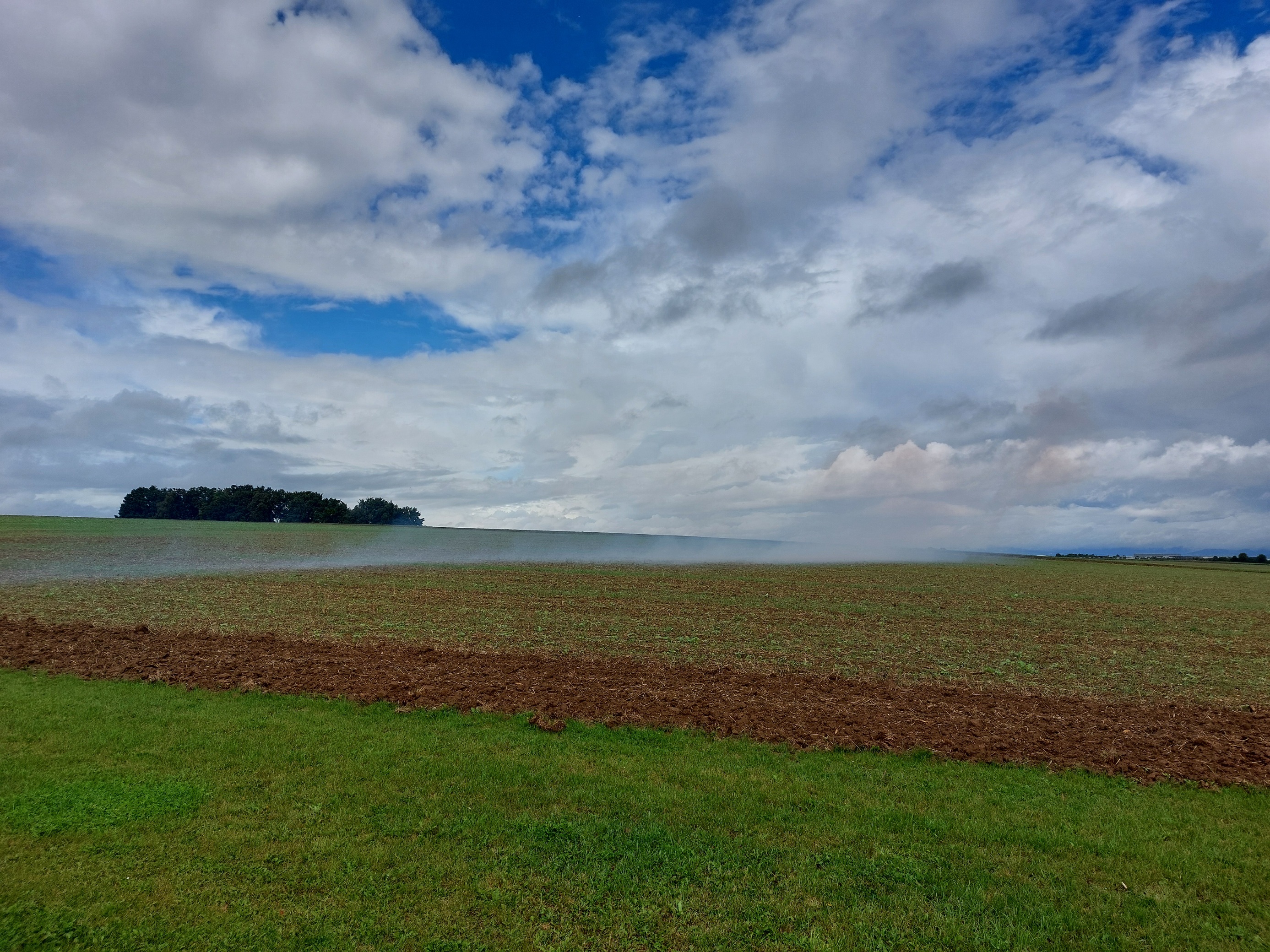 Der Rauch eines 7er Clusters zieht übers Feld