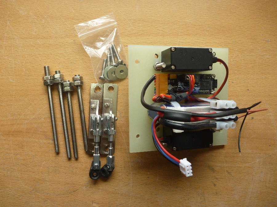 Der allererste Aufbau der Servomechanik zum Testen der Funktion der Haltebolzen.