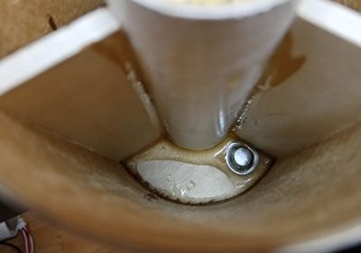 Nachdem ich das Epoxy in einem gekürzten Pappbecher angemischt hatte, ließ ich es an den zu klebenden Kanten nach unten laufen. So entstehen die Fillets von selbst.