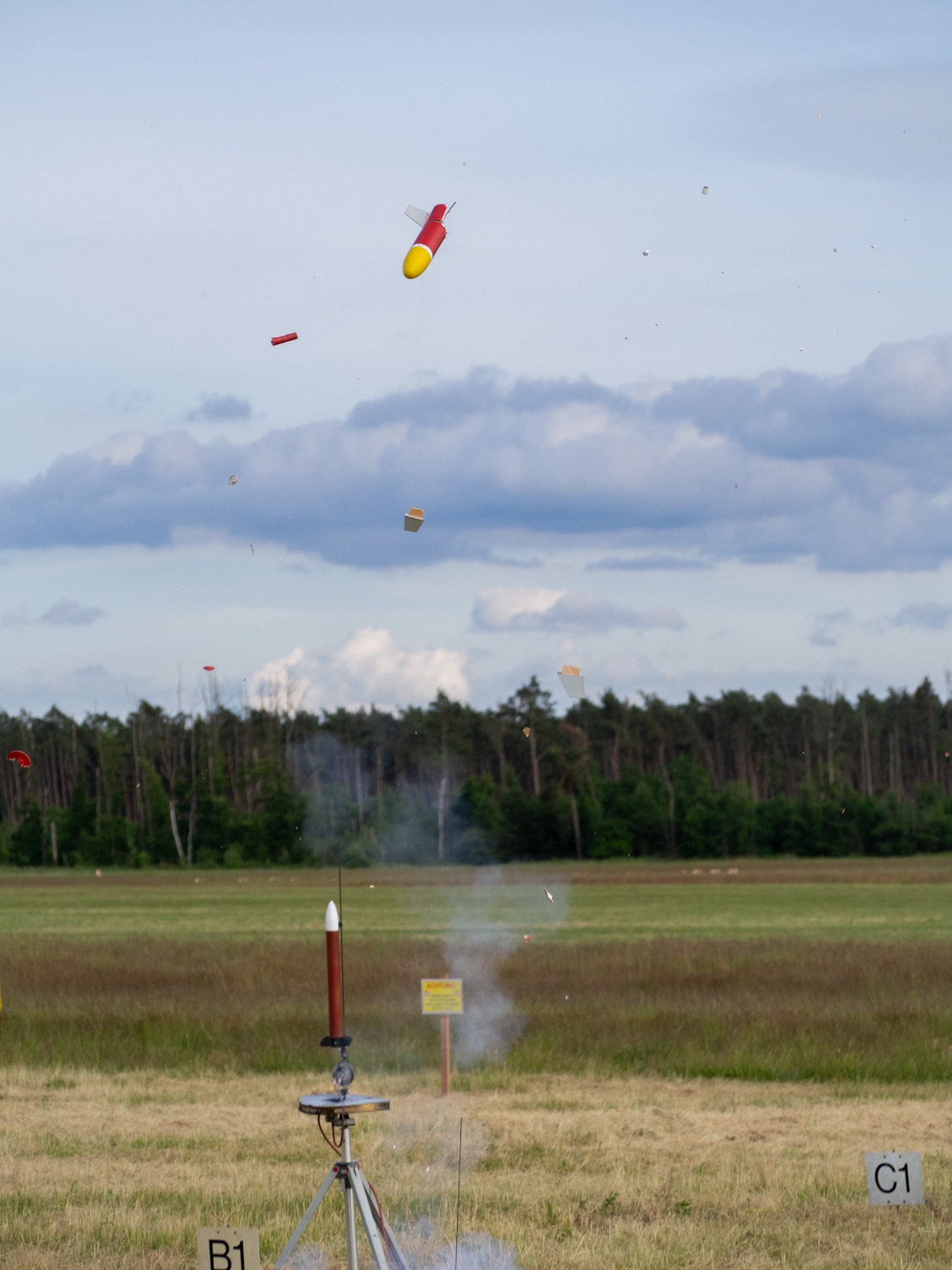 ![]() Was lange währt wird gut ! Und so konnte das Projekt VEROX, der Dresdner Studentengruppe nach 4 tägiger intensiver Vorbereitungszeit, am Sonntag auch noch gestartet werden ![]() Glückwunsch an August und sein Team für den Erfolgreichen Start, den tollen Flug und die sichere Landung ihrer Rakete ![]() Andreas |