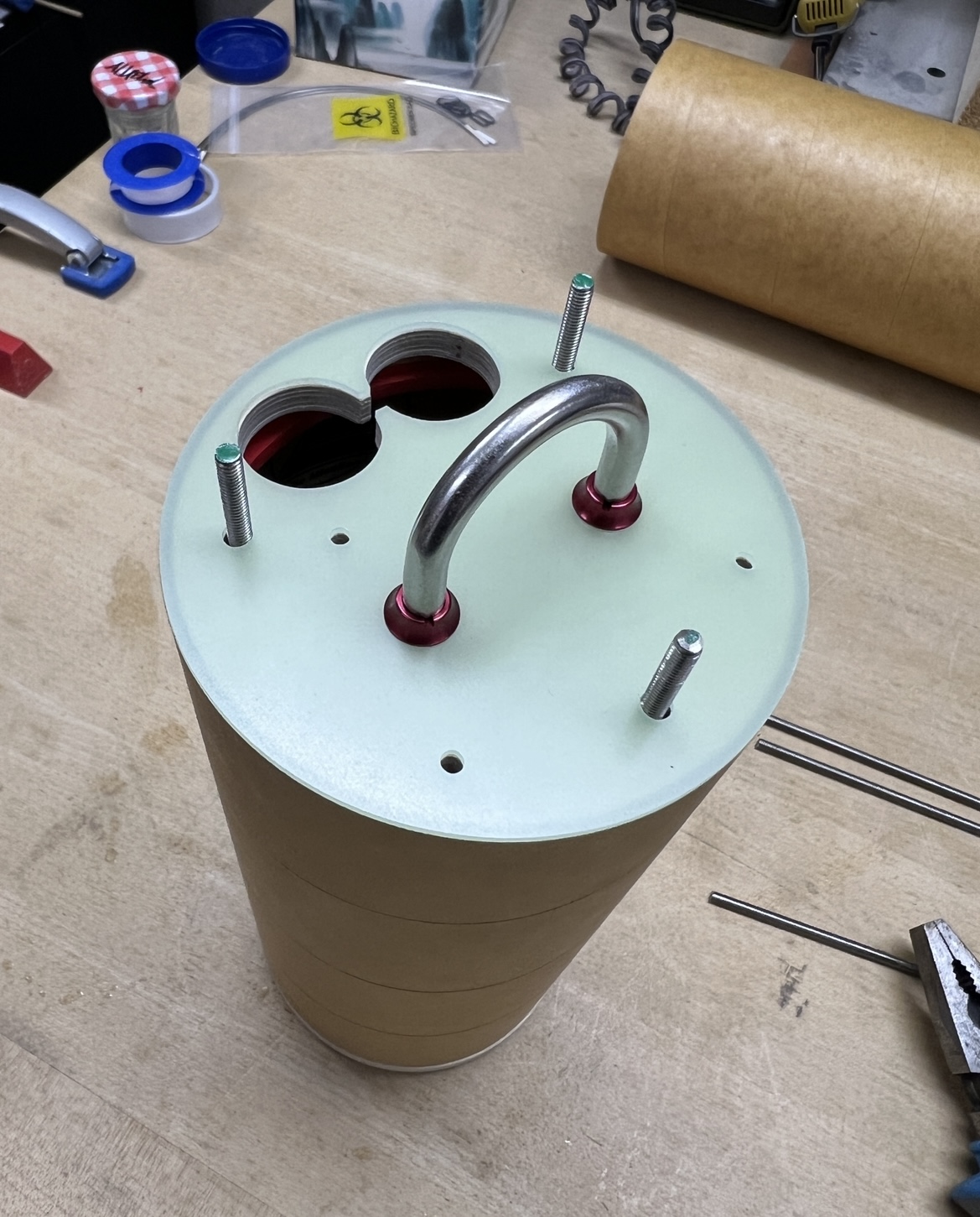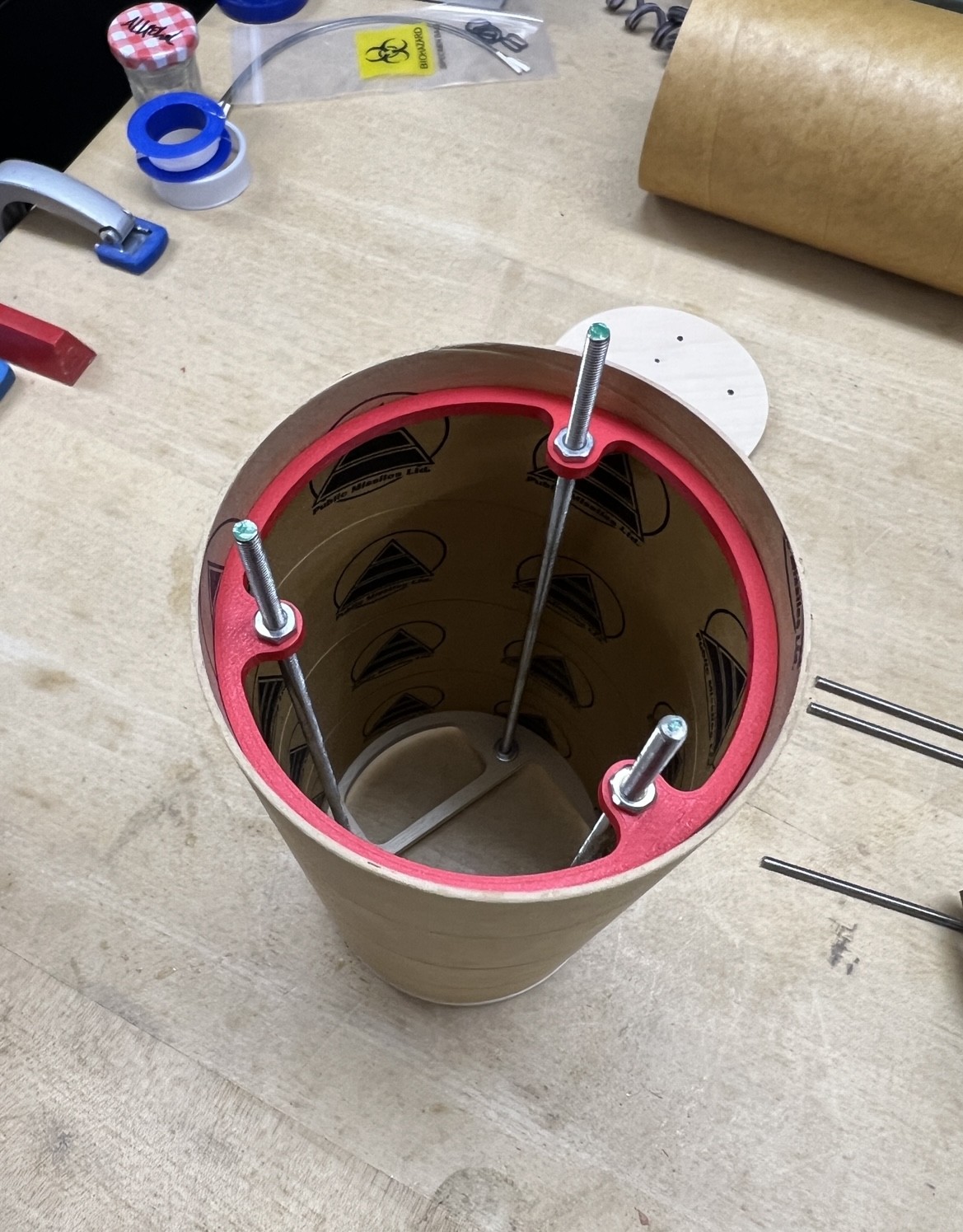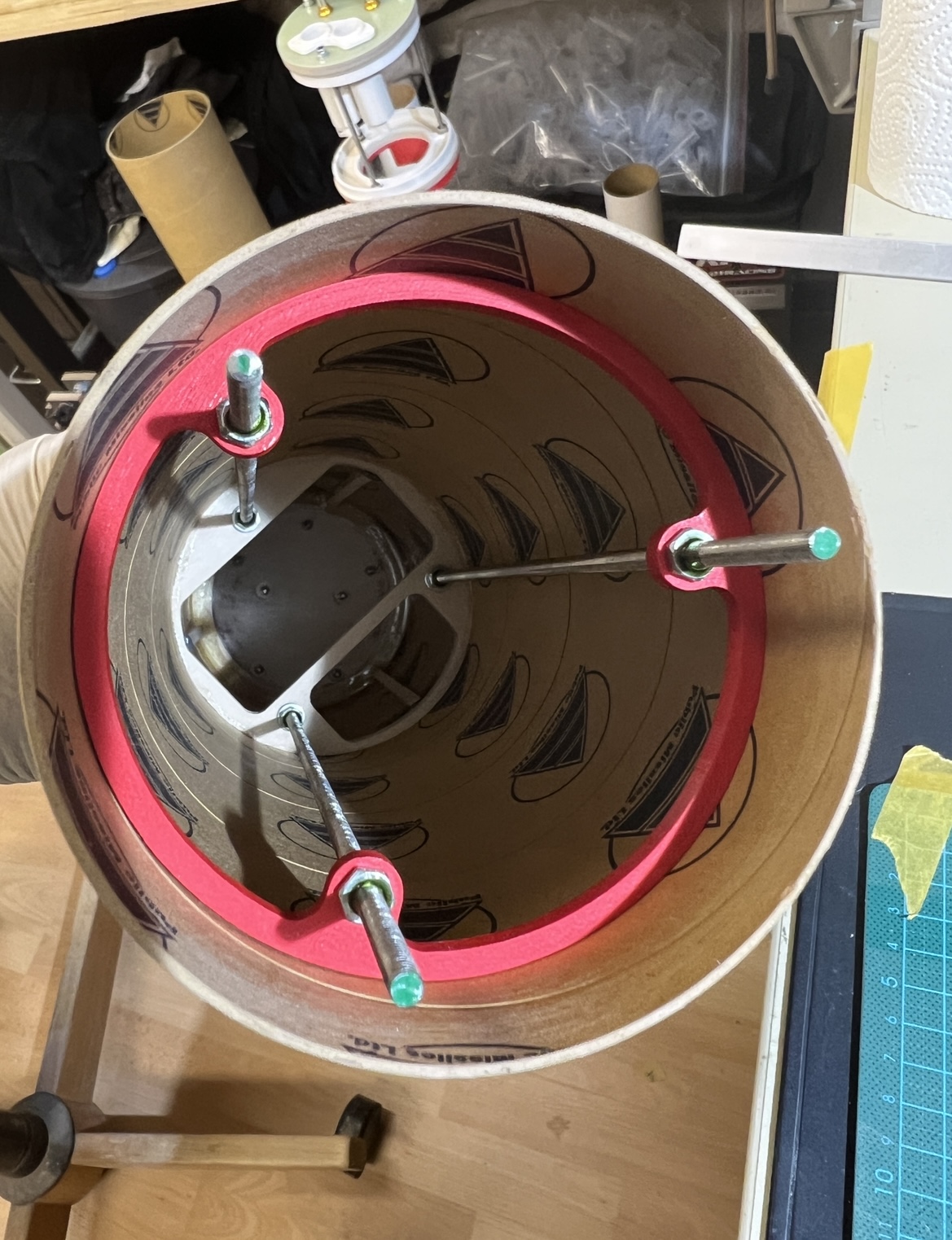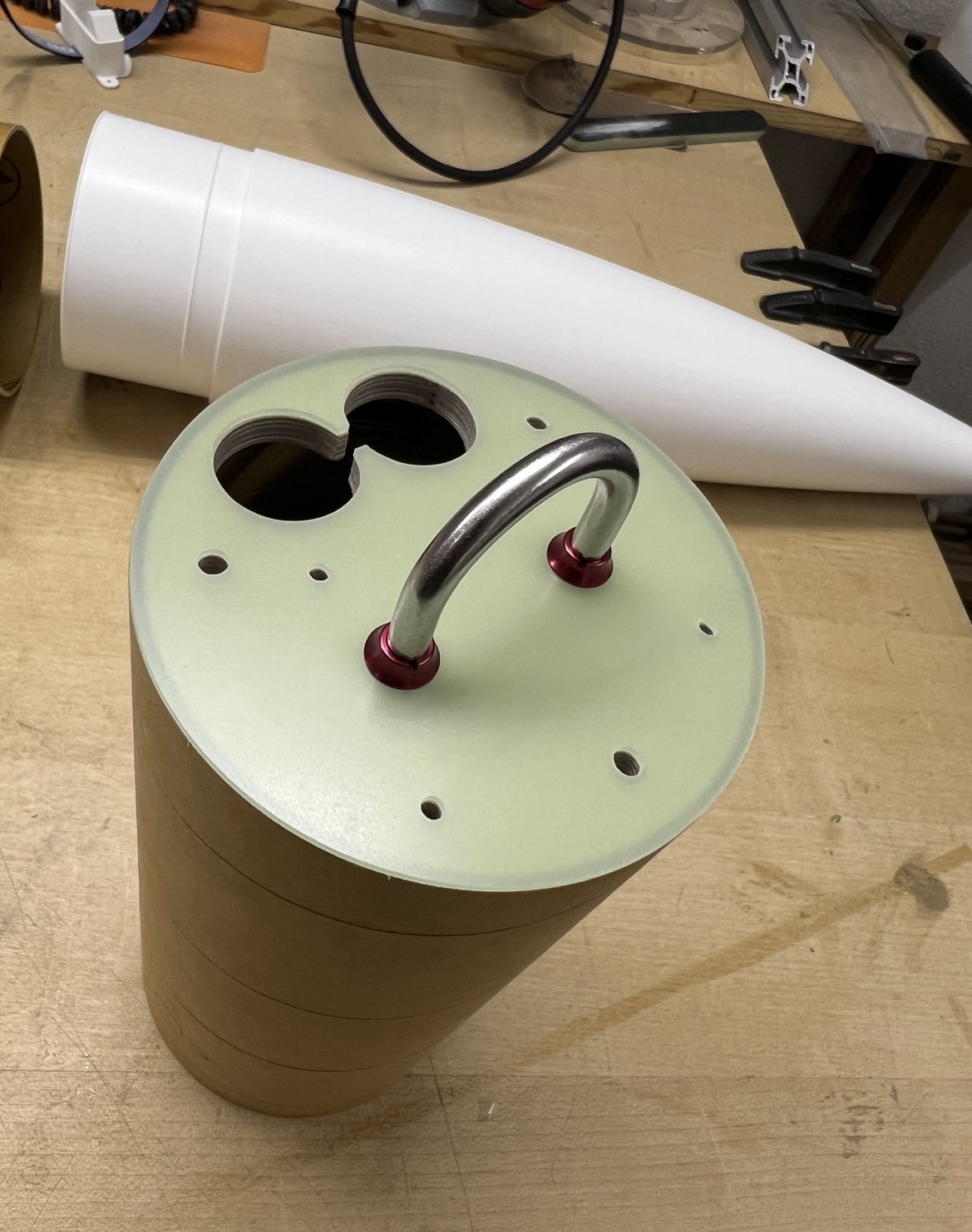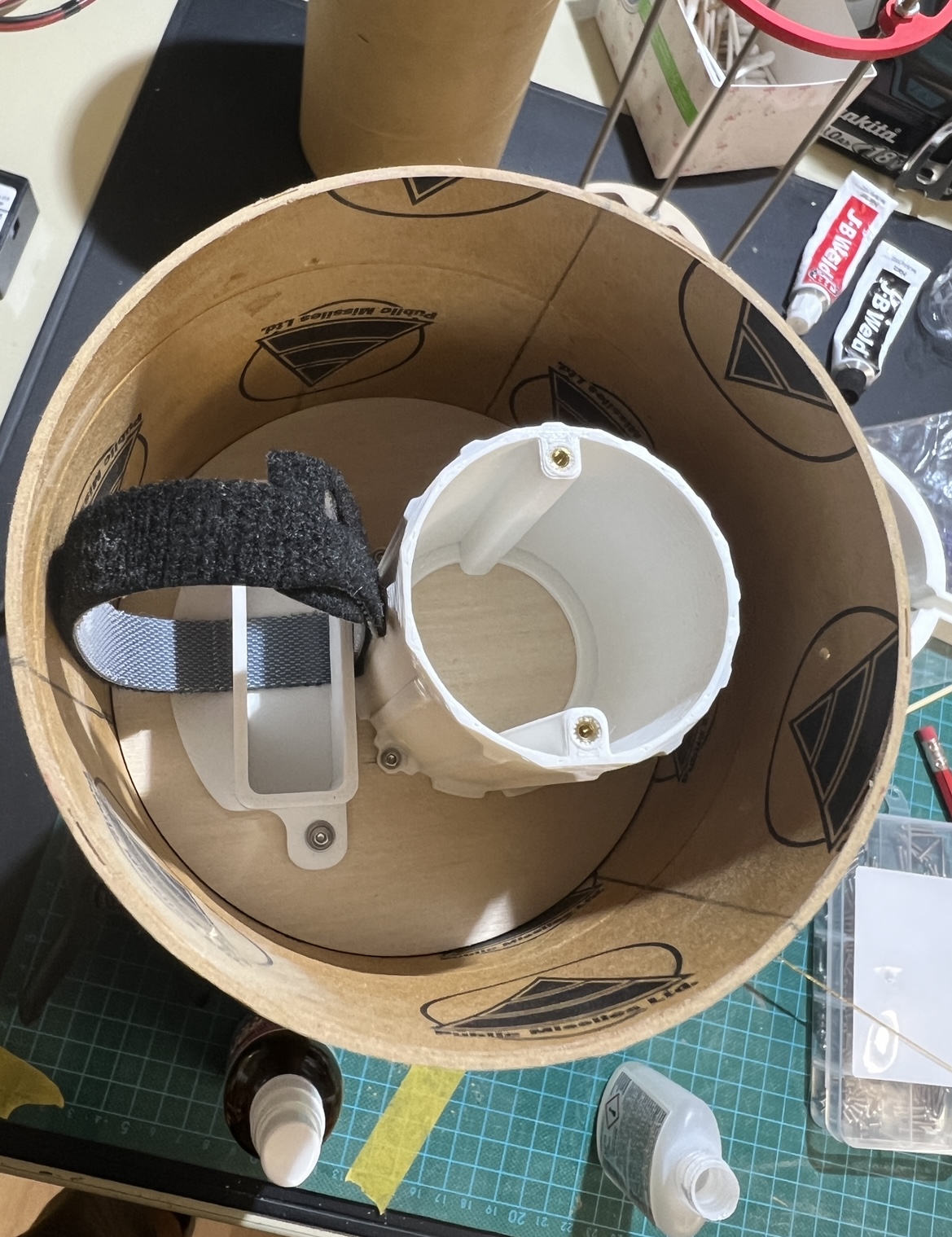 Löcher für die Nasen Aufnahme wurden gebohrt und damit die das ganze diesmal langfristiger hält wurden anstatt die Gewinde direkt zu schneiden Messing Schmelz Muttern eingesetzt … diese dann noch mit etwas Kleber auf der Innenseite verstärkt. Damit dieser bestmöglich hält wurde der Kunststoff vorher mit einem chemischen primer behandelt… Die Nosbay Aufnahmen sowie Abstandsleisten wurden eingeklebt … Danach wurde der Coupler samt Zwischenspant eingesetzt … Damit das ganze auch schön gerade durchtrocknet wurde alles zusammen ausgerichtet und fixiert … Viele Grüße Marco |