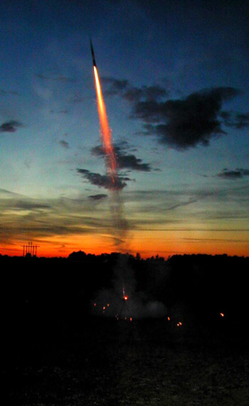 Meinem Jubi-Referenten gelang dieser Schnappschuss von meiner H5K-Rakete in der Dämmerung.