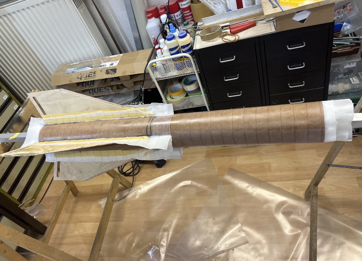 Es geht wieder ein wenig voran … Erstmal wurde das Körperrohr mit dem Abschluss Spant verklebt … Dann ein Fillet an den Oberen Spant .. hierzu, um etwas präziser zu arbeiten, so tief im Rohr, habe ich das Harz über eine Spritze mit Silikonschlauch platziert … um Kontrolle über das Schlauchende zu haben wurde es an einem Stab geführt … So sieht es dann aus … Viele Grüße Marco